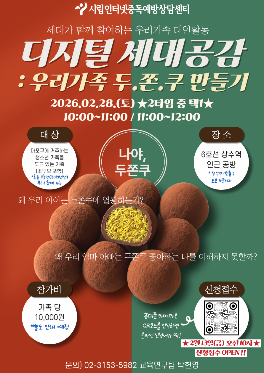 프로그램 공지 [모집] 2026년 디지털 세대공감: 우리가족 두쫀쿠 만들기